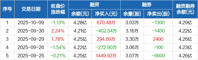 我武生物:融资净买入670.48万元,融资余额4.28亿元(10-09)