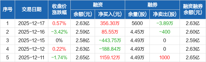 楚天科技:融资净买入356.3万元,融资余额2.63亿元(12-17)
