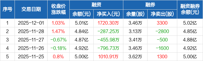 炬华科技:融资净买入1720.3万元,融资余额5.01亿元(12-01)