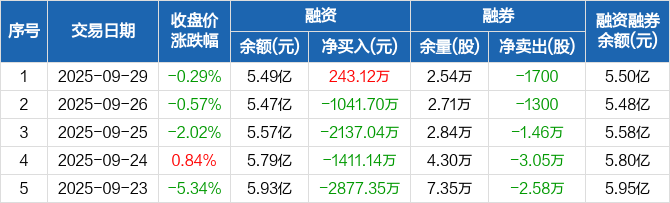 博腾股份:融资净买入243.12万元,融资余额5.49亿元(09-29)