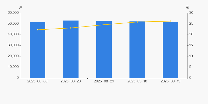 截至2025年9月19日,公司最新总股本为5.45亿股,其中流通股本为5亿股。户均持有流通股数量由上期的9579股上升至9709股,户均流通市值25.49万元。