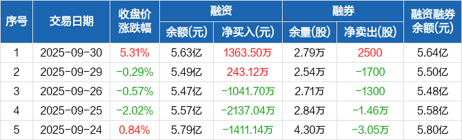 博腾股份:融资净买入1363.5万元,融资余额5.63亿元(09-30)