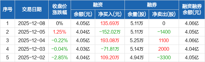 博腾股份:融资净买入135.69万元,融资余额4.05亿元(12-08)
