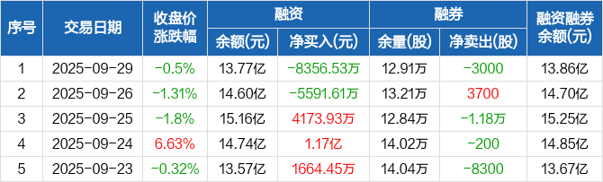 扬杰科技:融资净偿还8356.53万元,创近一年新高(09-29)