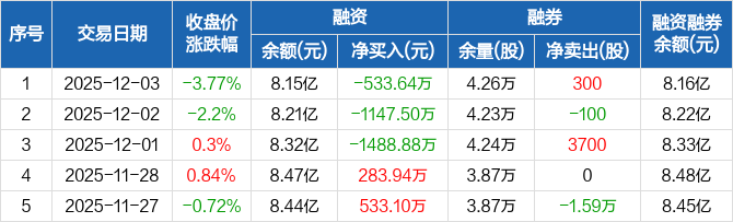 赢时胜:融资余额8.15亿元,创近一年新低(12-03)