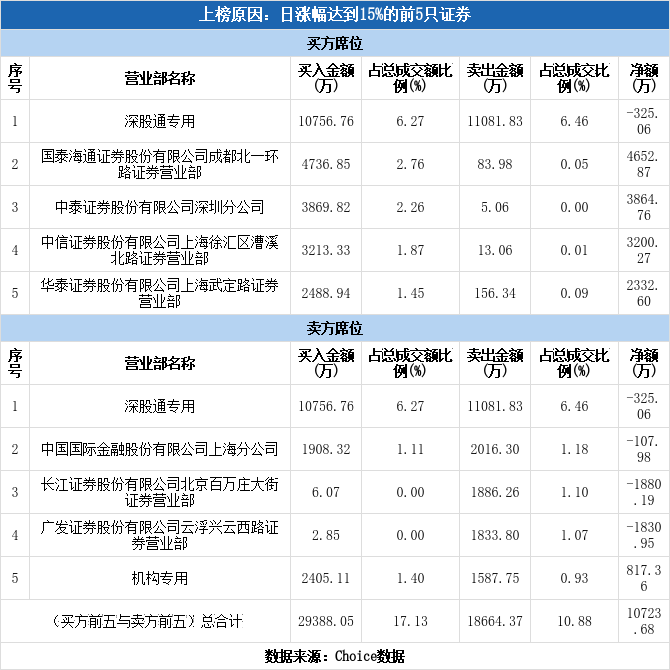多主力现身龙虎榜,赢时胜涨停(12-05)