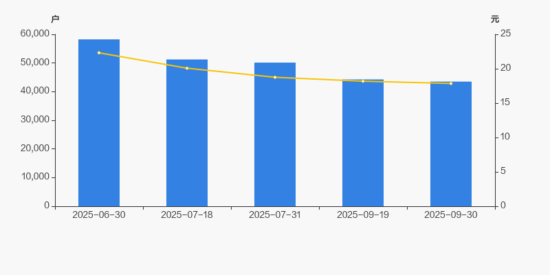 自2025年6月30日以来,公司股东户数连续4期下降,截至目前减幅为25.30%。2025年6月30日至2025年9月30日区间股价下降19.98%。