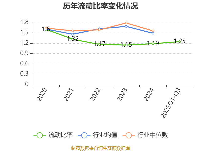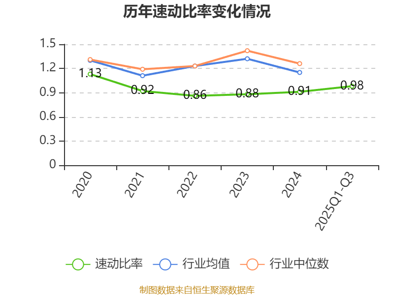 2025年前三季度,公司流动比率为1.25,速动比率为0.98。