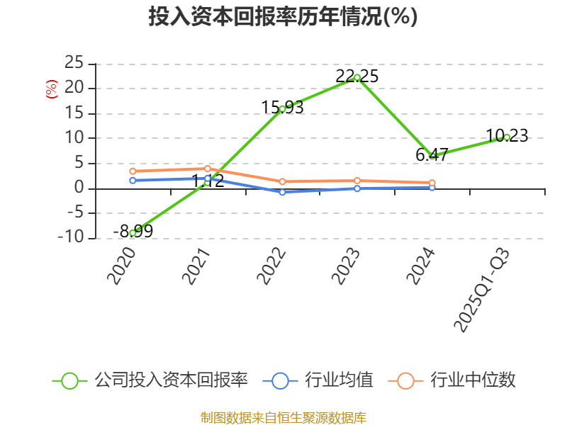 盈利能力方面, 2025年前三季度公司加权平均净资产收益率为11.72%,同比上升3.65个百分点。公司2025年前三季度投入资本回报率为10.23%,较上年同期上升4个百分点。