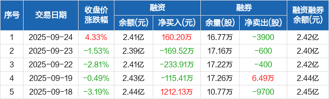 中来股份:融资净买入160.2万元,融资余额2.41亿元(09-24)
