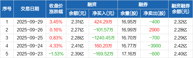 中来股份:融资净买入424.29万元,融资余额2.31亿元(09-29)