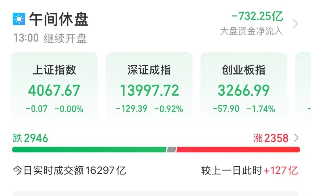 2月4日早盘,A股震荡回落。截至午间收盘,上证指数微跌,报4067.67点;深证成指跌0.92%,创业板指跌1.74%,科创综指跌2.06%。沪深北三市半日成交16297亿元,中际旭创成交额达216.96亿元,位居A股第一。