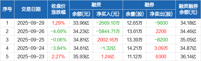 天孚通信:融资净偿还2669.1万元,融资余额33.96亿元(09-29)