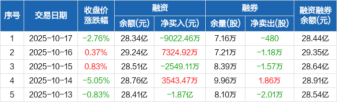 天孚通信:融资净偿还9022.46万元,融资余额28.34亿元(10-17)