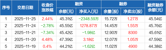 天孚通信:融资净偿还2348.59万元,融资余额45.31亿元(11-25)