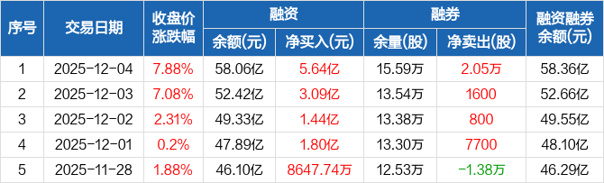 天孚通信:融资净买入5.64亿元,两市排名第二(12-04)