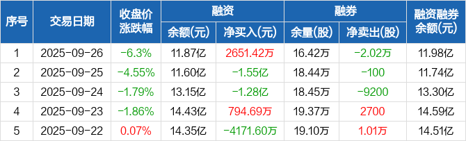 菲利华:融资净买入2651.42万元,融资余额11.87亿元(09-26)