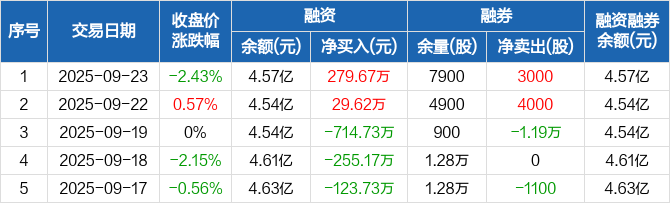 天和防务:融资净买入279.67万元,融资余额4.57亿元(09-23)