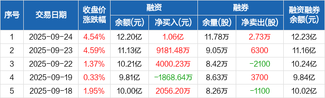 飞凯材料:融资余额12.2亿元,创近一年新高(09-24)