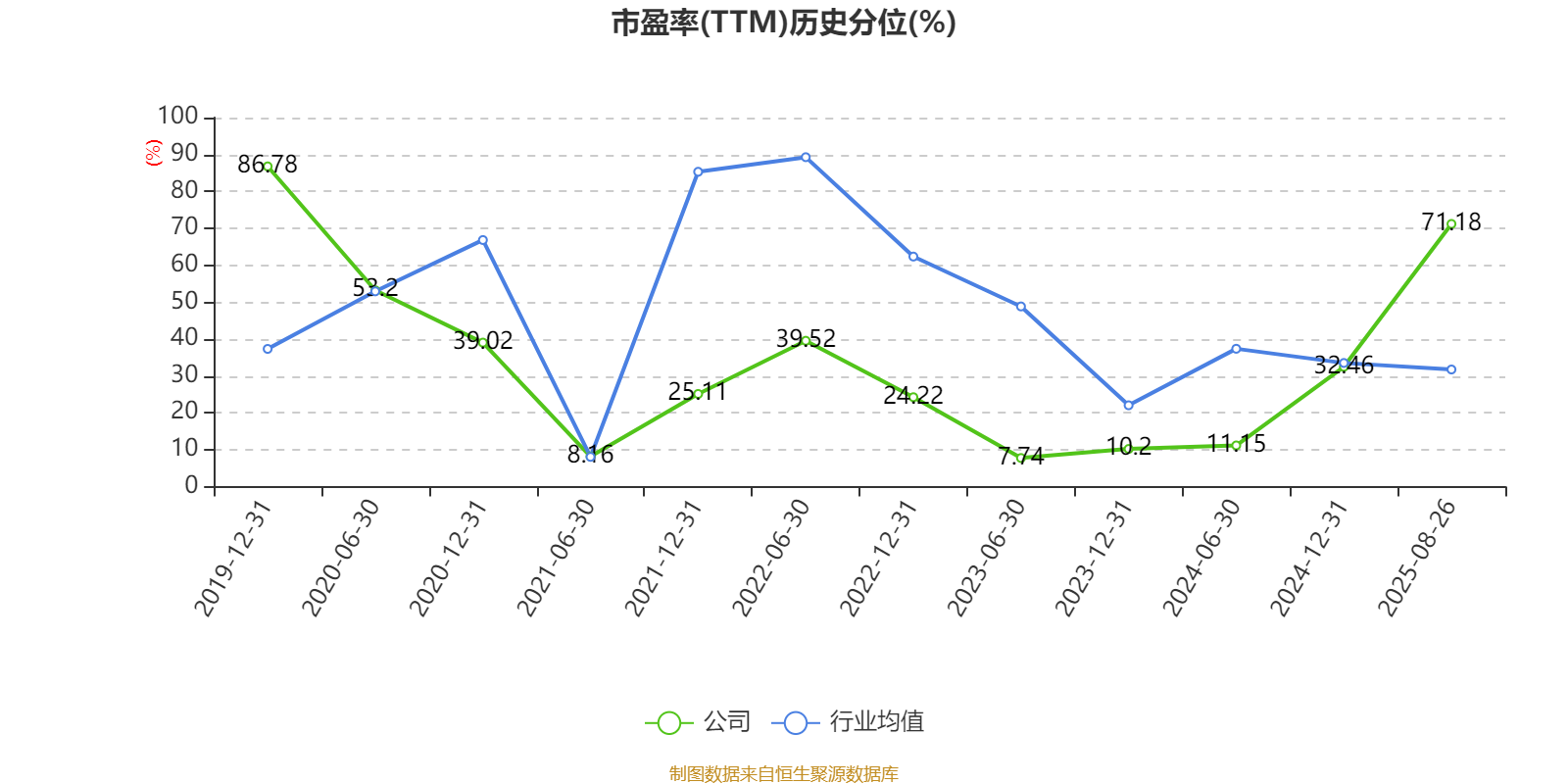 市盈率、市净率为负时,不显示当期分位数,会导致折线图中断。