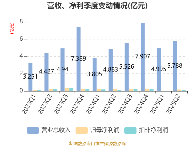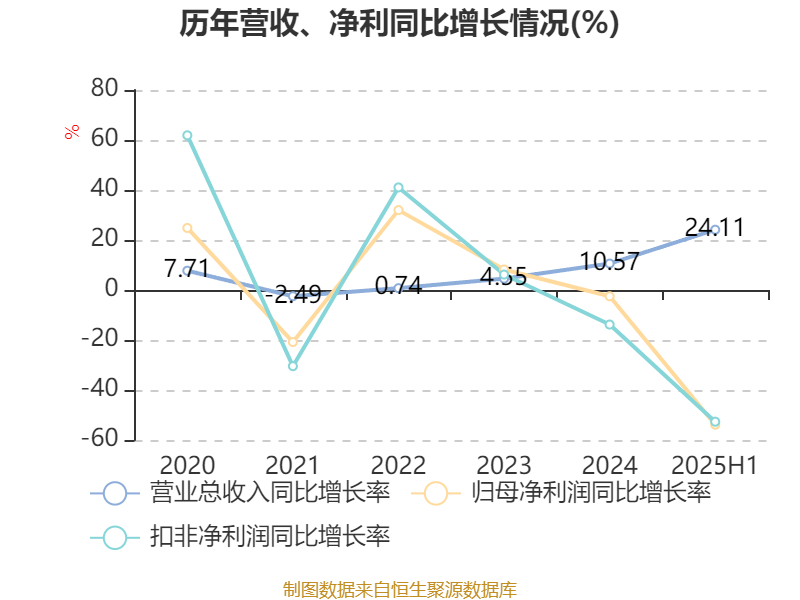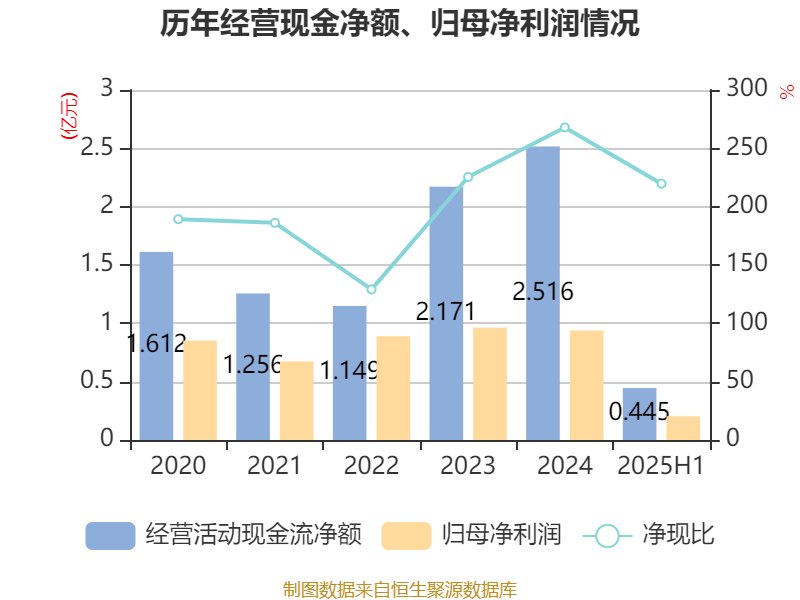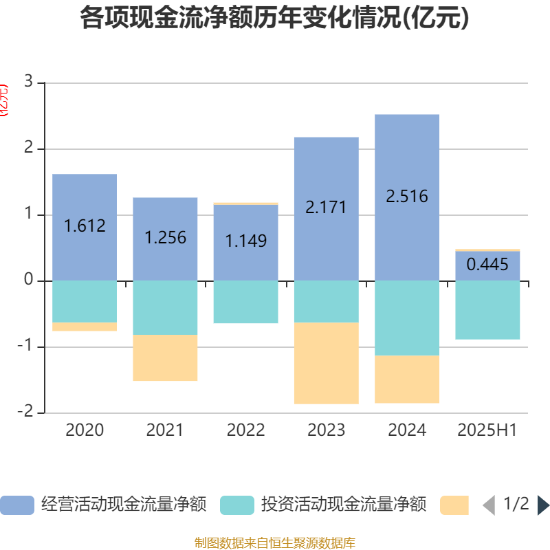 2025年上半年,公司经营活动现金流净额为4450.75万元,同比增加6927.47万元;筹资活动现金流净额305.99万元,同比增加1.01亿元;投资活动现金流净额-8933.4万元,上年同期为-4492.69万元。