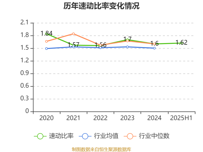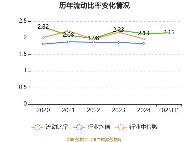 2025年上半年,公司流动比率为2.15,速动比率为1.62。