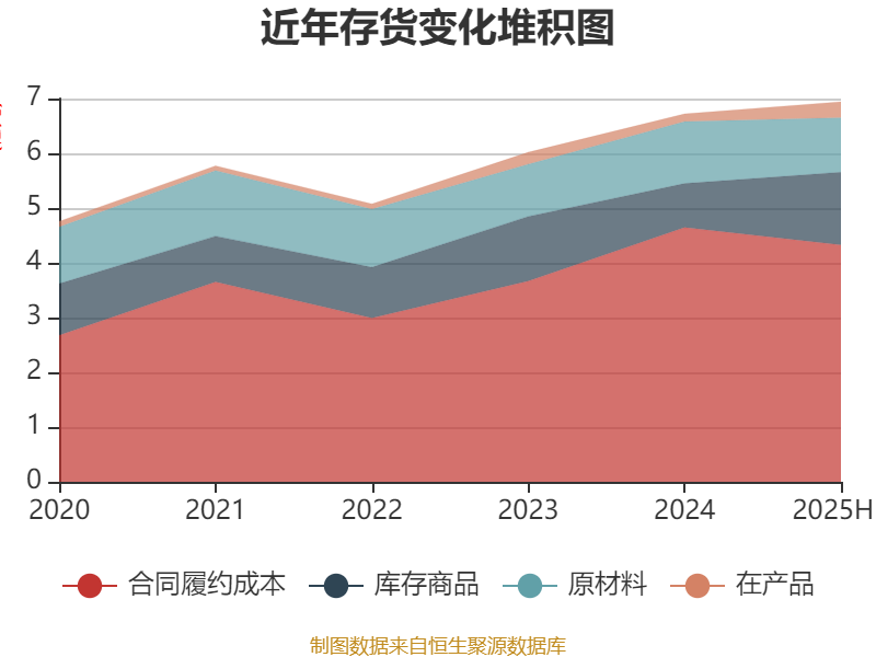 从存货变动来看,截至2025年上半年末,公司存货账面价值为6.94亿元,占净资产的36.6%,较上年末增加2200.01万元。其中,存货跌价准备为4163.6万元,计提比例为5.66%。
