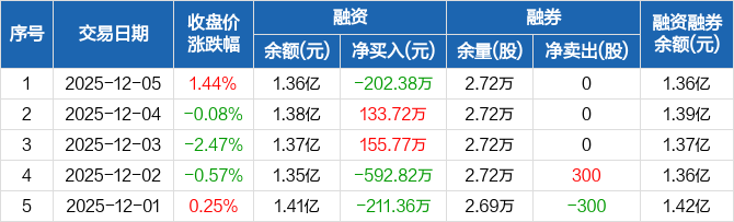 中光防雷:融资净偿还202.38万元,融资余额1.36亿元(12-05)