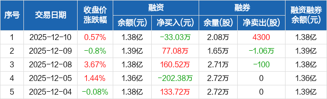 中光防雷:融资净偿还33.03万元,融资余额1.38亿元(12-10)