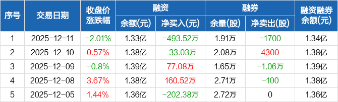 中光防雷:融资净偿还493.52万元,融资余额1.33亿元(12-11)
