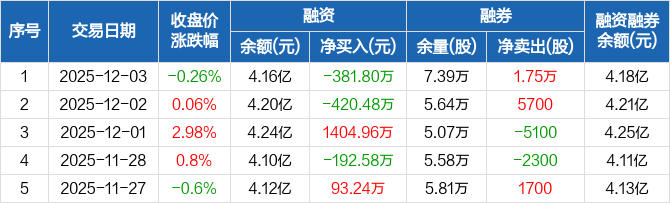 苏试试验:融资净偿还381.8万元,融资余额4.16亿元(12-03)