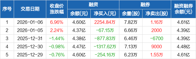 苏试试验:融资净买入2254.84万元,融资余额4.6亿元(01-06)