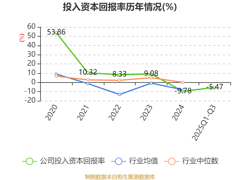 盈利能力方面, 2025年前三季度公司加权平均净资产收益率为-4.75%,同比下降0.57个百分点。公司2025年前三季度投入资本回报率为-5.47%,较上年同期下降1.31个百分点。