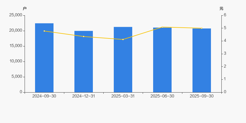 2024年9月30日至今,公司股东户数有所下降,区间跌幅为7.51%。2024年9月30日至2025年9月30日区间股价上涨4.60%。