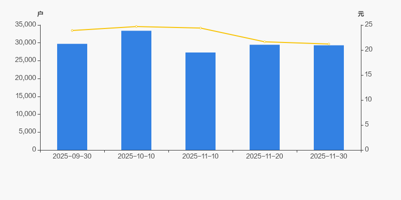 2025年9月30日至今,公司股东户数有所下降,区间跌幅为1.36%。2025年9月30日至2025年11月30日区间股价下降11.30%。