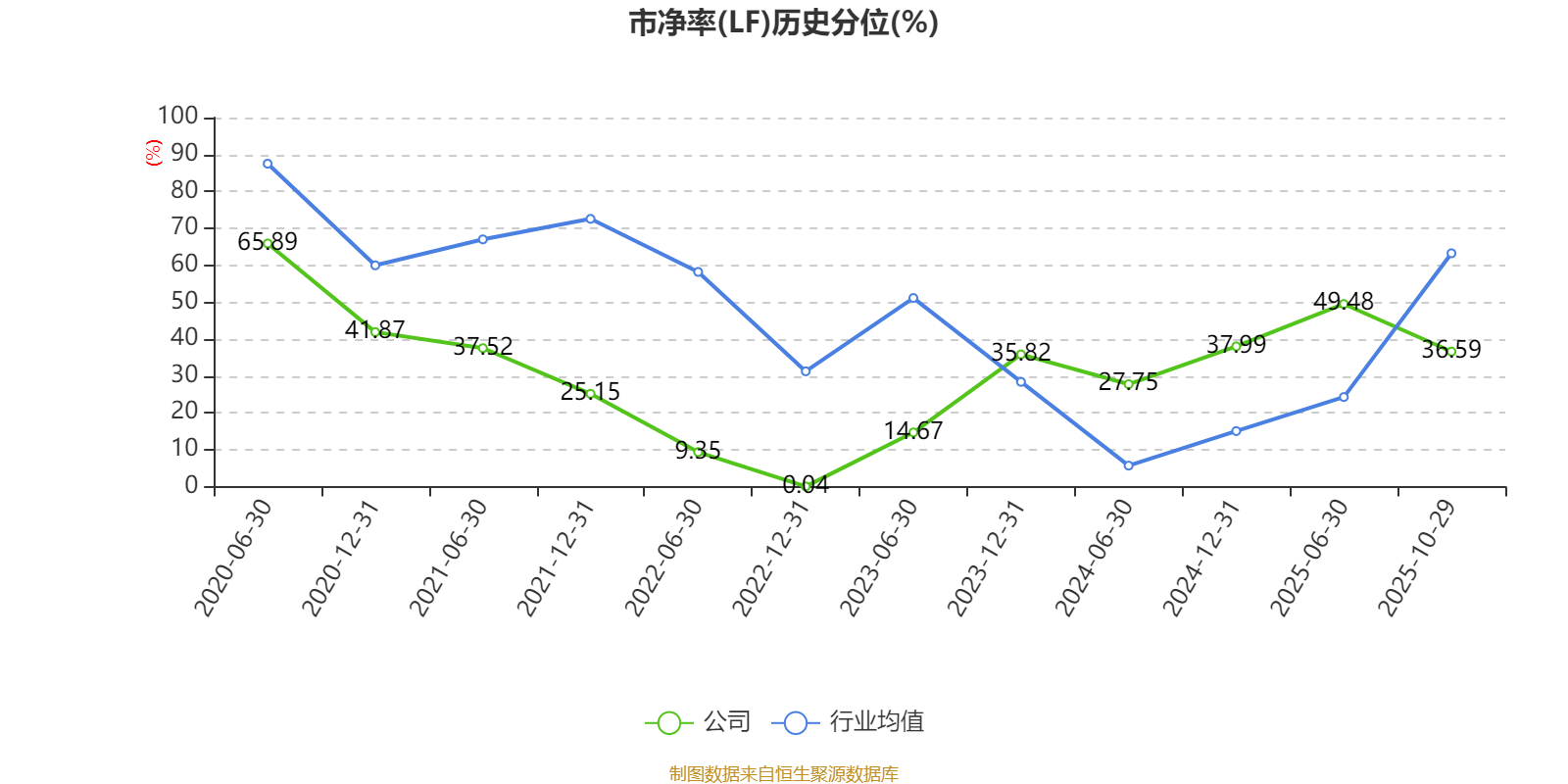 市盈率、市净率为负时,不显示当期分位数,会导致折线图中断。