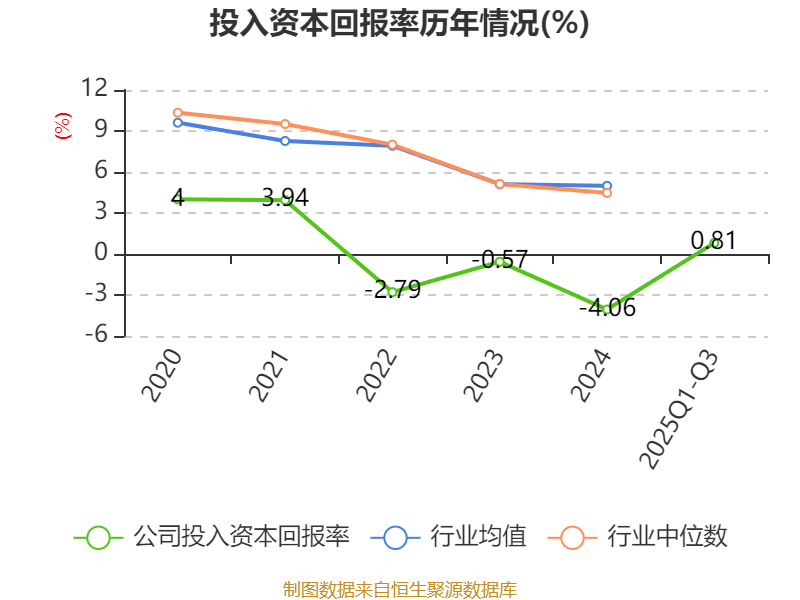 盈利能力方面, 2025年前三季度公司加权平均净资产收益率为-1.29%,同比上升0.11个百分点。公司2025年前三季度投入资本回报率为0.81%,较上年同期上升0.42个百分点。