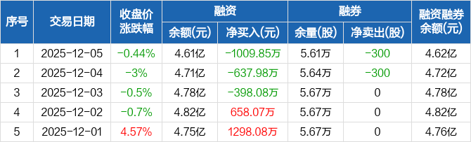 强力新材:连续3日融资净偿还累计2045.91万元(12-05)