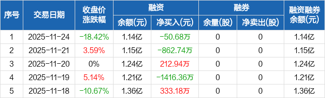 清水源:融资净偿还50.68万元,融资余额1.14亿元(11-24)