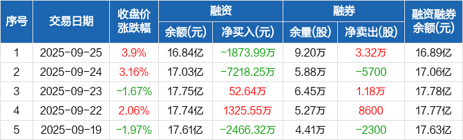 润泽科技:融资净偿还1873.99万元,融资余额16.84亿元(09-25)