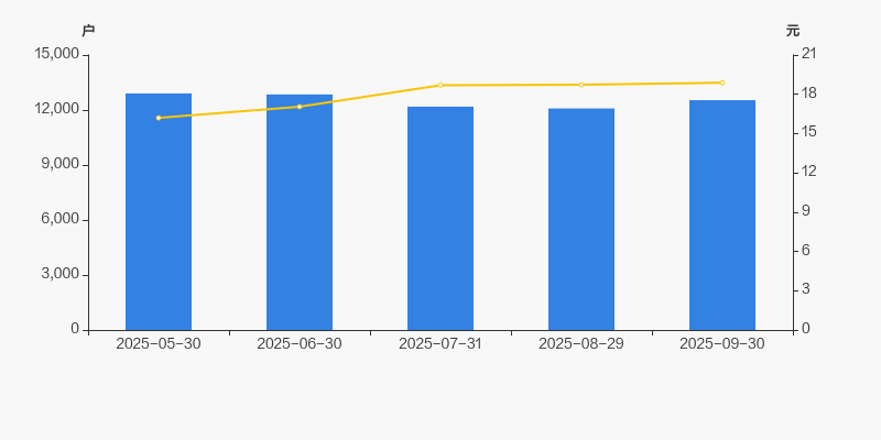 截至2025年9月30日,公司最新总股本为2.12亿股,其中流通股本为1.42亿股。户均持有流通股数量由上期的1.18万股下降至1.13万股,户均流通市值21.39万元。