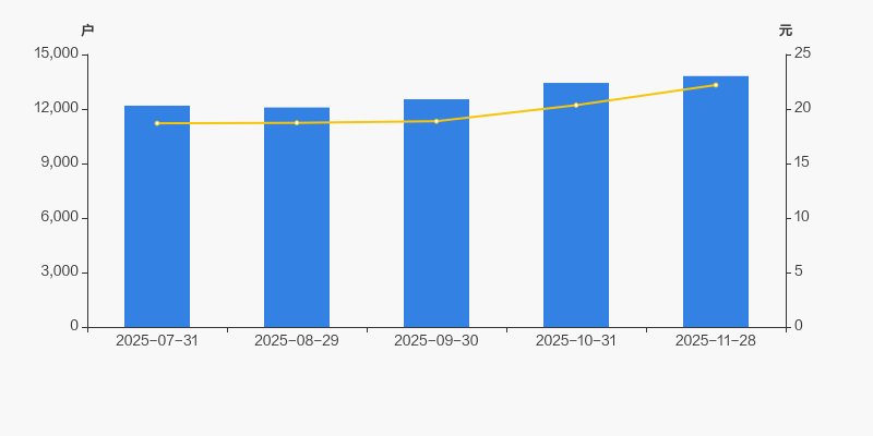 截至2025年11月28日,公司最新总股本为2.12亿股,其中流通股本为1.42亿股。户均持有流通股数量由上期的1.06万股下降至1.03万股,户均流通市值22.83万元。