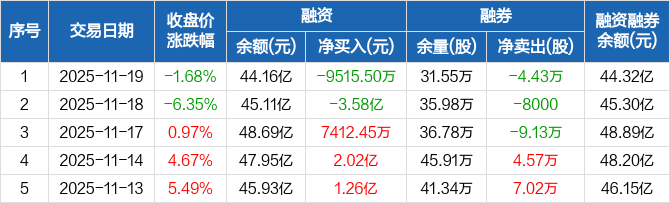 先导智能:融资净偿还9515.5万元,融资余额44.16亿元(11-19)