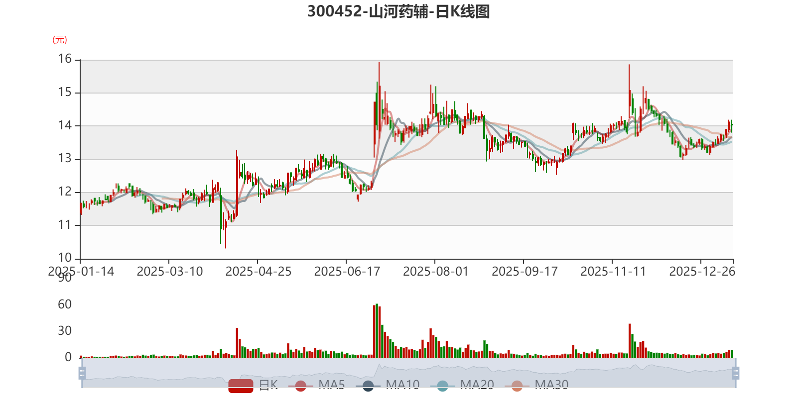 中证智能财讯山河药辅(300452)1月14日晚间披露2025年度业绩预告,预计2025年归母净利润1.65亿元至1.94亿元,同比增长38.16%-62.45%;扣非净利润预计1.47亿元至1.75亿元,同比增长45.32%-73%。以1月14日收盘价计算,山河药辅目前市盈率(TTM)约为16.97倍-19.95倍,市净率(LF)约3.53倍,市销率(TTM)约3.52倍。