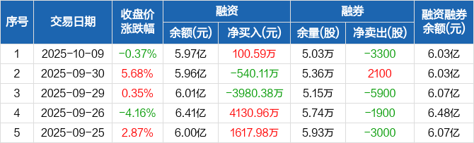 深信服:融资净买入100.59万元,融资余额5.97亿元(10-09)