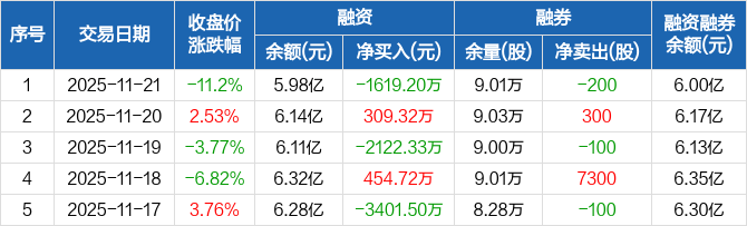 航天智装:融资净偿还1619.2万元,融资余额5.98亿元(11-21)