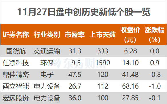 东方财富Choice数据显示,今日有5只个股盘中股价创历史新低。