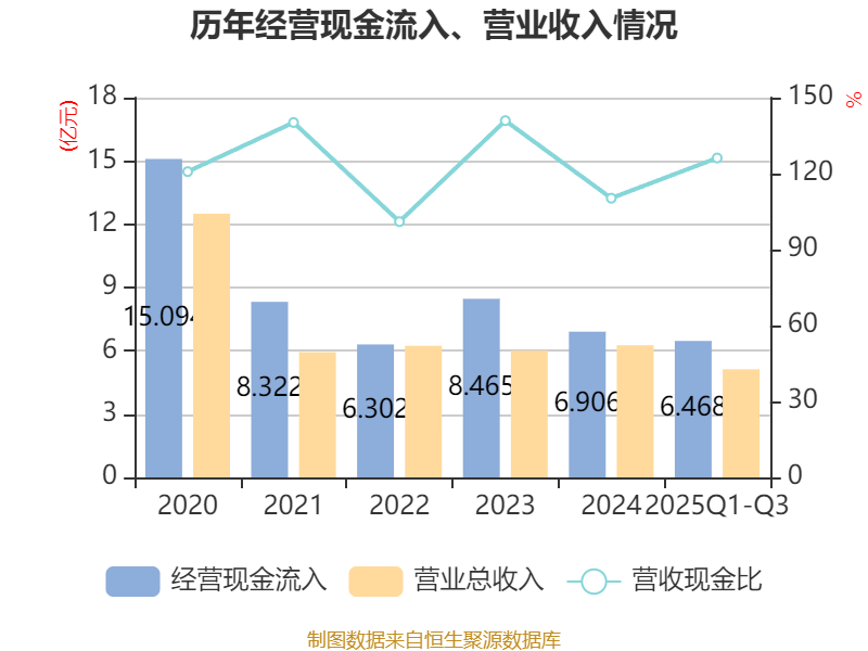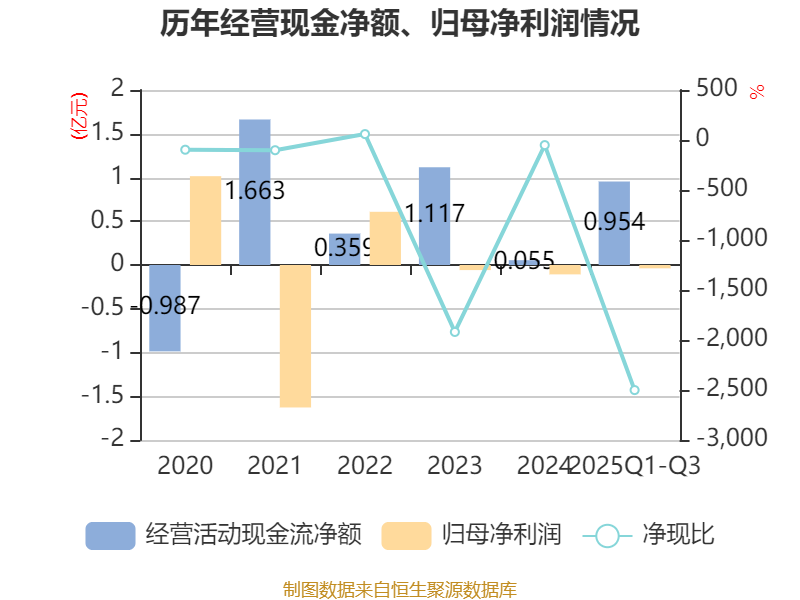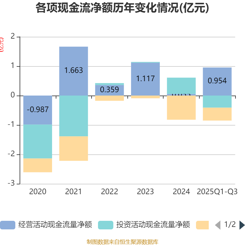 2025年前三季度,公司经营活动现金流净额为9538.38万元,同比增加1.55亿元;筹资活动现金流净额-4387.29万元,同比增加3386.89万元;投资活动现金流净额-4116.68万元,上年同期为3717.83万元。