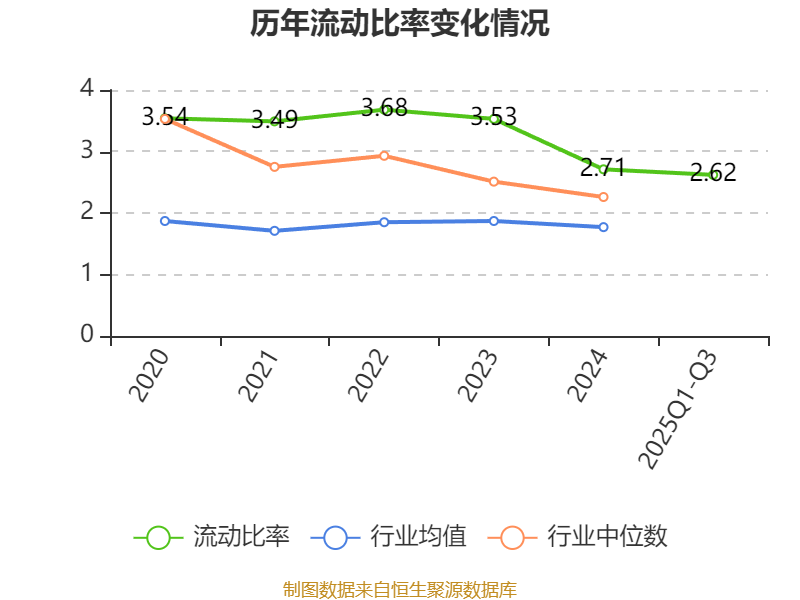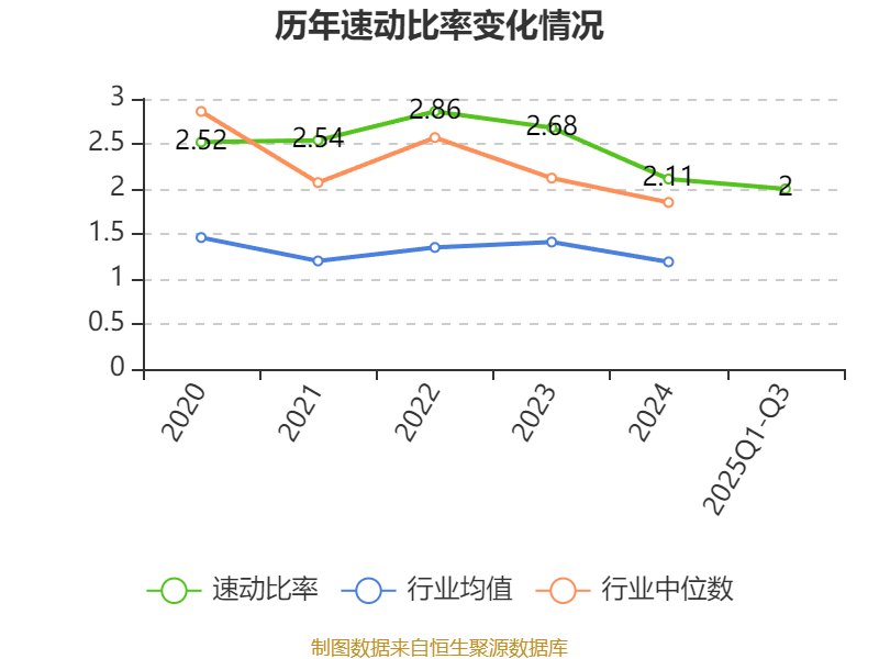 2025年前三季度,公司流动比率为2.62,速动比率为2。