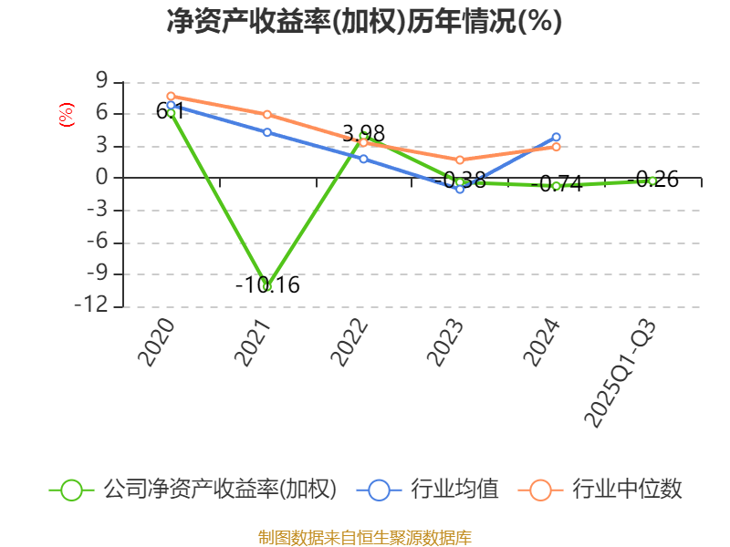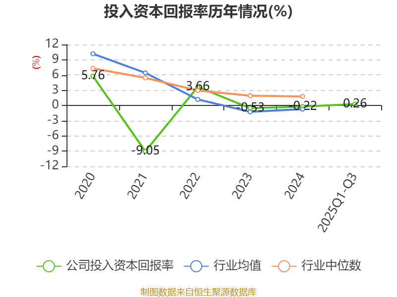 盈利能力方面, 2025年前三季度公司加权平均净资产收益率为-0.26%,同比上升3.42个百分点。公司2025年前三季度投入资本回报率为0.26%,较上年同期上升4.04个百分点。